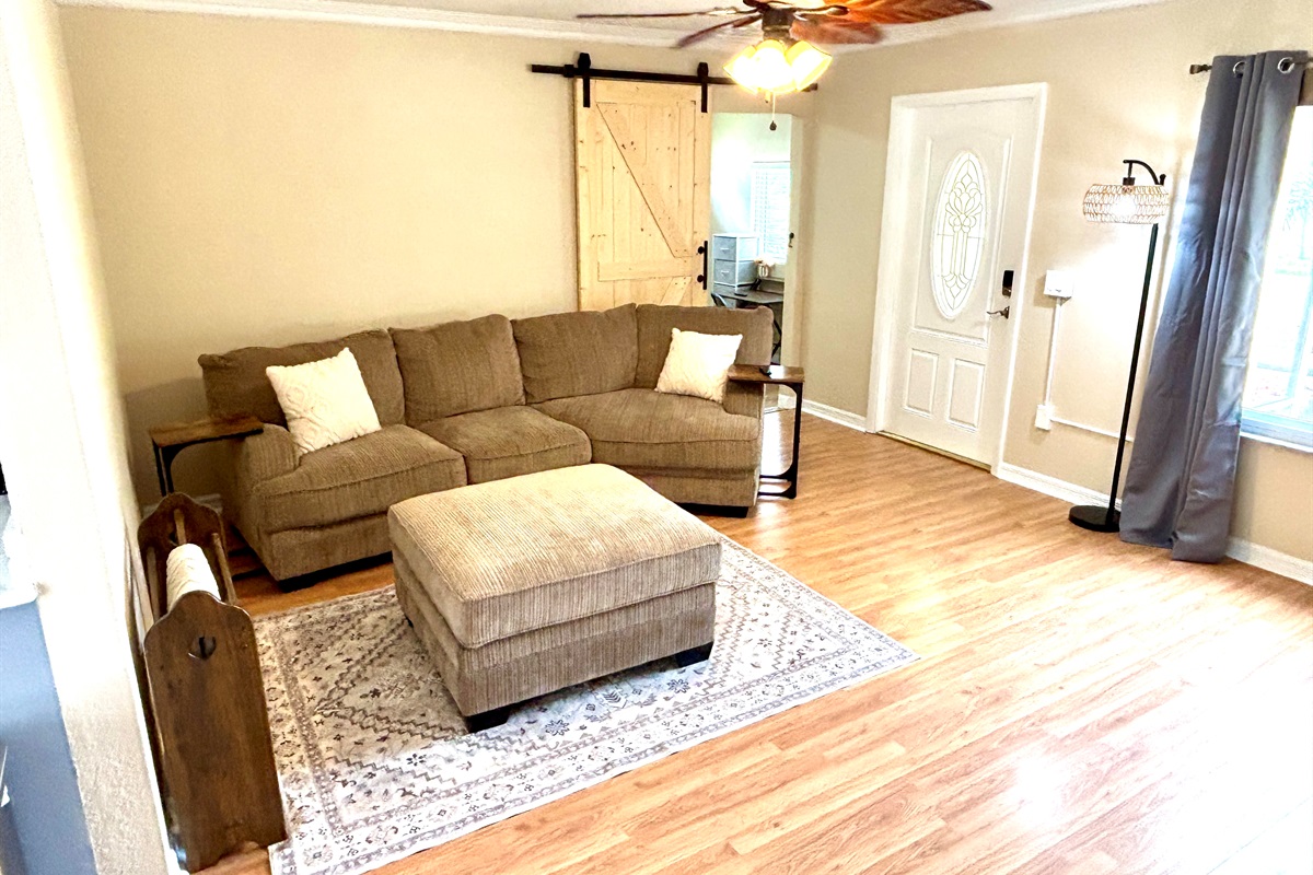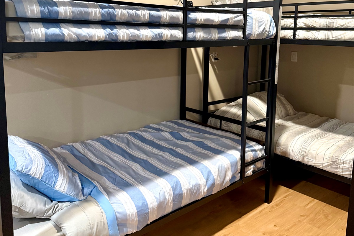 • 🏡 3BR, 2 full bath main house (sleeps 5) + 🛏 Bunkhouse Studio w/ kitchenette, full bathroom & 4 twins (sleeps 4) Fenced yard for pets and security.